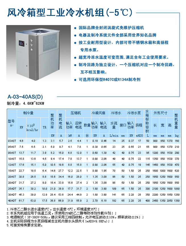 1.產(chǎn)品種類齊全,包括高溫(出水溫度-5℃),中溫(出水溫度-10℃),低溫(出水溫度-15℃)三大系列。